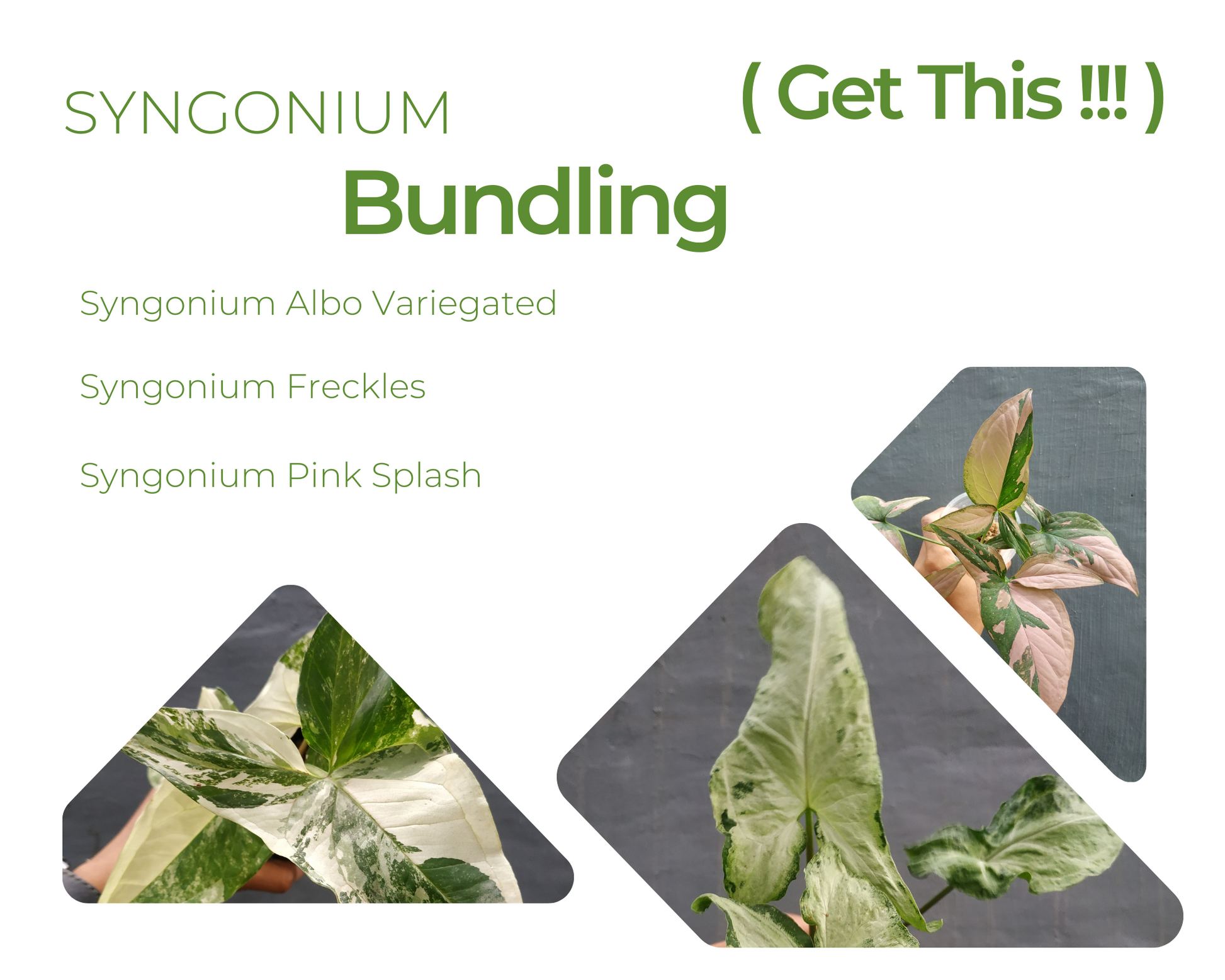 Syngonium Albo Variegated, Syngonium Freckles, Syngonium Pink Splash